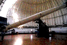 in Williams Bay, WI, 50 mi. SW of Milwaukee off I-43 is home of the World's Largest Refractor. The telescope's primary lens is 40" in diameter. Unfortunately, the public is admitted only on Saturday afternoon except by group appointment