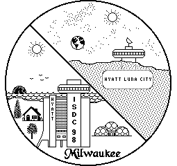 However, the conference committee wanted something simpler. A decision was made to request designs from a graphics designer known to one of the committee persons, Tom Gill of Gill Design. He submitted several design suggestions one of which was adopted (see masthead), another adapted as a logo for the Lunar Reclamation Society (see masthead).